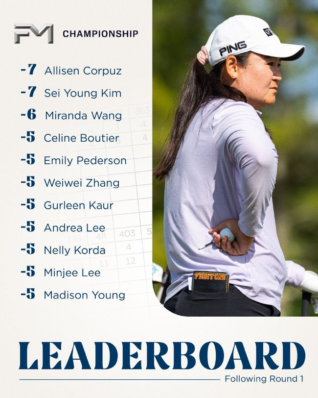 北京时辰8月29日,好意思国选手艾莉森-科泼斯(Allisen Corpuz)在本年大部分时辰进展逐步的情况下持久保持耐性,终于在周四的FM锦标赛首轮迎来疏忽。她交出65杆,低于尺度杆7杆,与金世煐(Kim Sei Young)、朱迪-夏多夫(Jodi Ewart Shadoff)并排朝上。