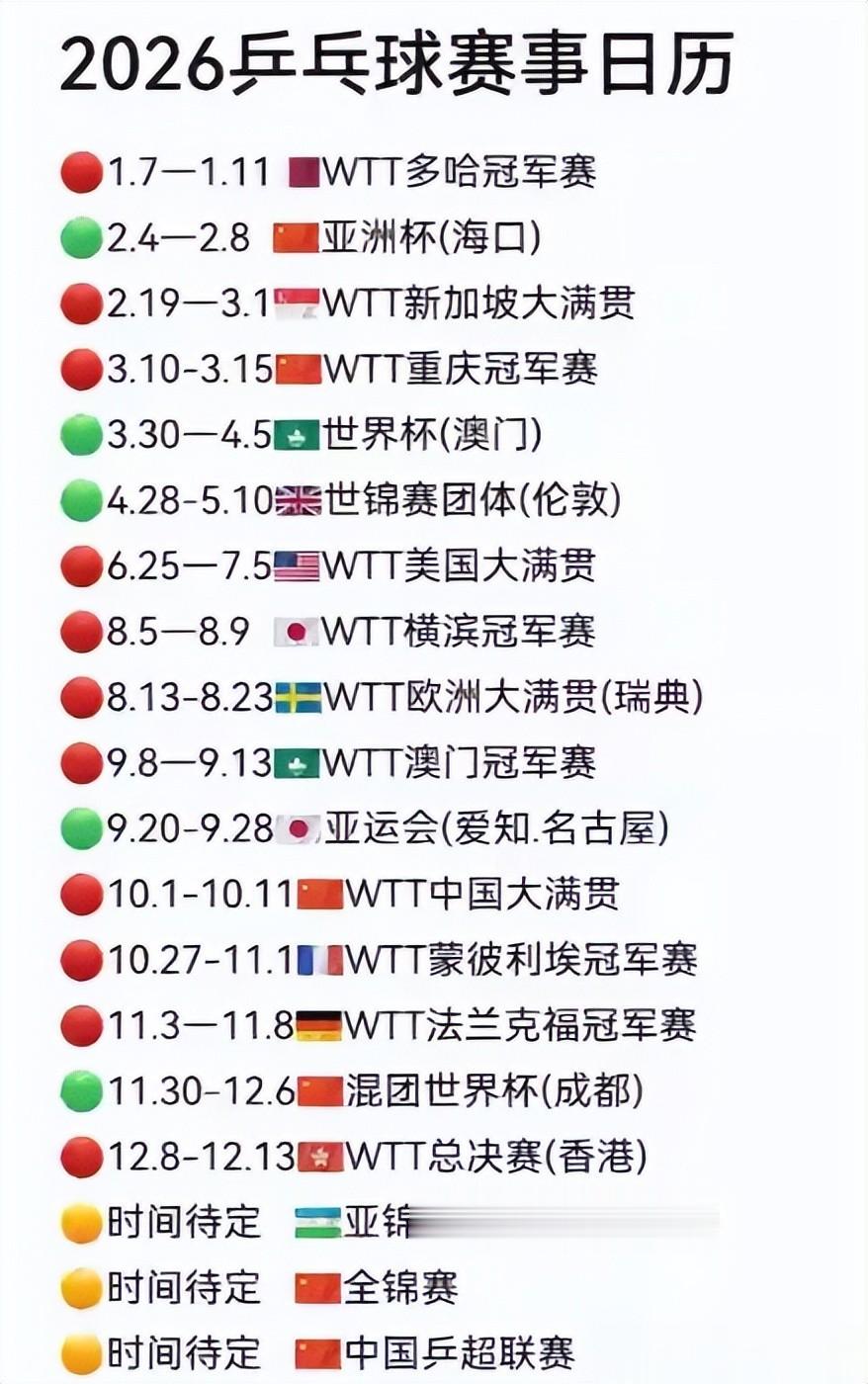 另外,2026年乒乓球主要赛事如下,人人也不错参考!