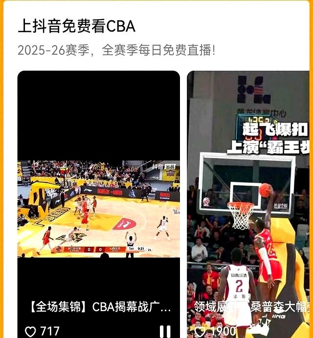 CBA揭幕战收视率拉风,抖音入局重构中国行状联赛破钞形势