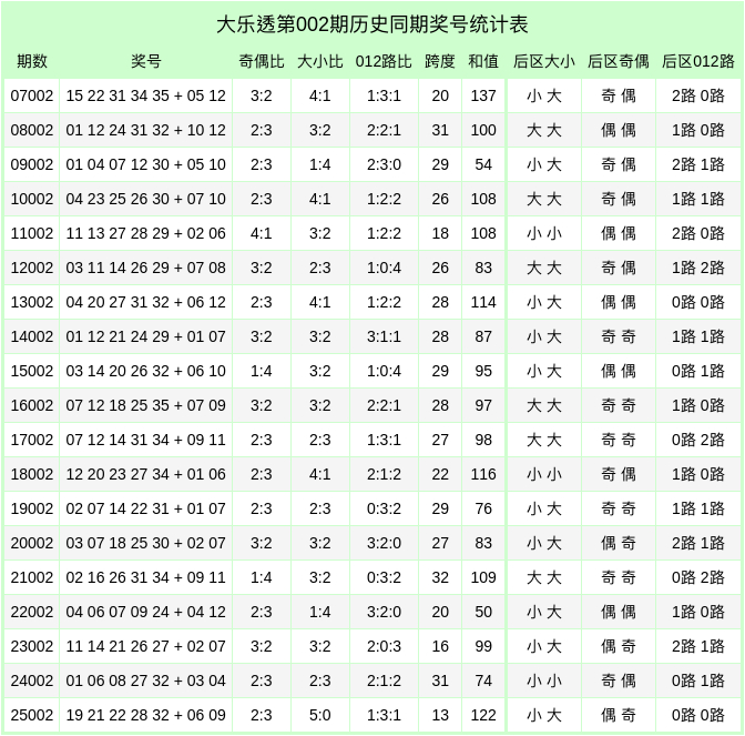 第26002期大乐透历史同时奖号分析