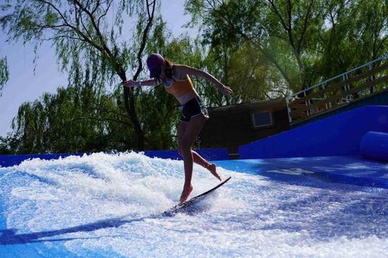 2016年,刘泫圻创建了酷浪CLUB,自大开业,营业就一直可以。冲浪俱乐部的池塘里,用机器人工造浪,水很浅,最深的位置也惟有15厘米足下,即使不会拍浮的人,也能来过把冲浪的“瘾”。刘泫圻先容,这样的神色叫作念滑板冲浪,危急悉数不高。