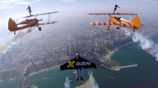 2015年10月13日,伊夫·罗西和他的伙伴文斯·雷费特从一架直升机上从1676米高空,与阿联酋航空公司空中客车A380在迪拜海拔1219米的高空巡航遨游约10分钟。