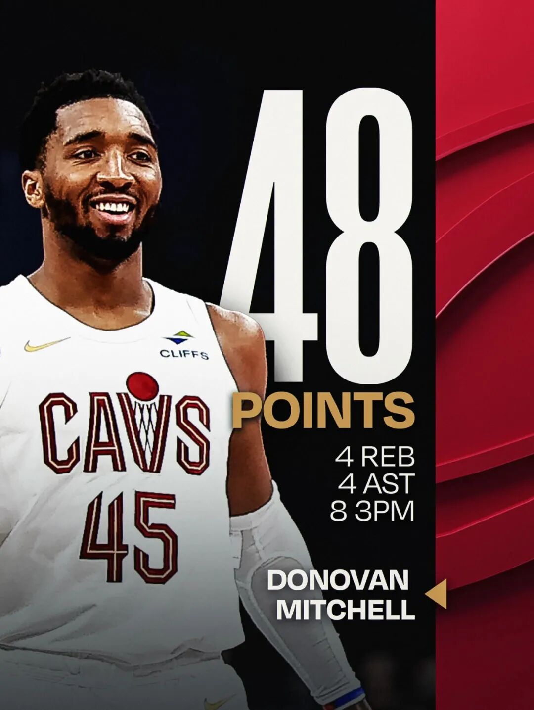 这场比赛,米切尔又一次打出了炸裂明白:全场出战35分钟,投篮31中17,三分15中8,罚球6中6,拿下48分4篮板4助攻2抢断,正负值+9。
