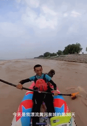 穿上浮水衣,搭乘小舟(气船),飘摇于黄河之间,对了,还要带上可爱的小狗“辣条”,这是90后小伙步凡多年来的梦念念。