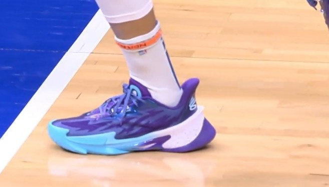 本场比赛,库里赛前热身程序,穿回了UA,上脚了库里品牌的旗舰鞋款Curry Series 7。这个配色是为三东说念主女子篮球联赛Unrivaled作念的PE鞋款。