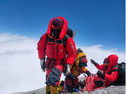 5月27日11时,2020珠峰高程测量登山队8名攻顶队员次落、袁复栋、李富庆、普布顿珠、次仁多吉、次仁平措、次仁罗布、洛桑顿珠克服重重致密,顺利从北坡登上珠穆朗玛峰峰顶。13时30分,8名队员完成峰顶测量任务,初始下撤。他们在峰顶停留150分钟,创造了中国东谈主在珠峰峰顶停留时长新记载。
