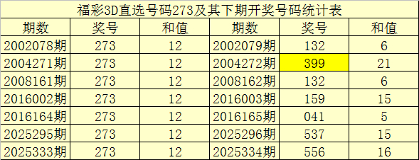 一、开奖总结:第2025333期福彩3D奖号为273。奖号奇偶比为2:1,和值为:12,跨度为:5。
